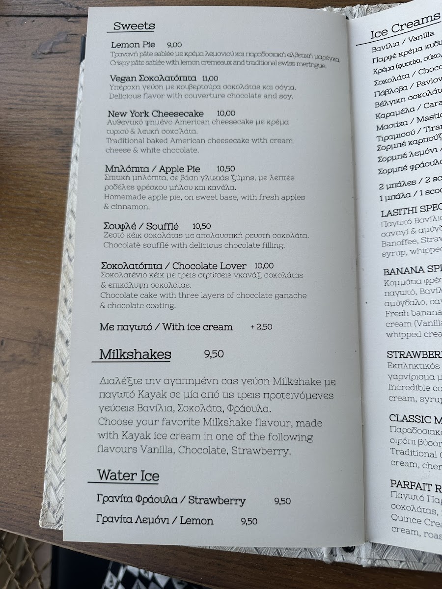 To round off any visit, desserts like apple pie with ice cream or mastic ice cream present a gentle sweetness that fits the relaxed mood. Alongside a selection of mixed fruit juices, coffees, and soft drinks, the menu at Lasithi encourages a calm, easygoing dining experience that allows you to savor both the food and the views.