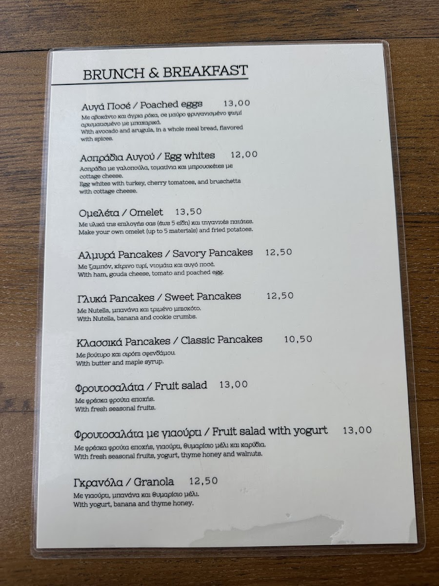 Start your day with comforting café classics like a Freddo Espresso or a frothy Cappuccino, paired with a simple toast or a Nutella pancake for a sweet touch. For a late breakfast or brunch, dishes such as scrambled eggs with feta, tomatoes, and potatoes provide a cozy, satisfying start.